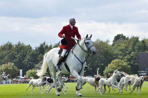 Before the match began, we watched a parade around the polo field. First came the marching band, then the young polo players and then the cutest pack of happy dogs (fox hunt?), followed by…