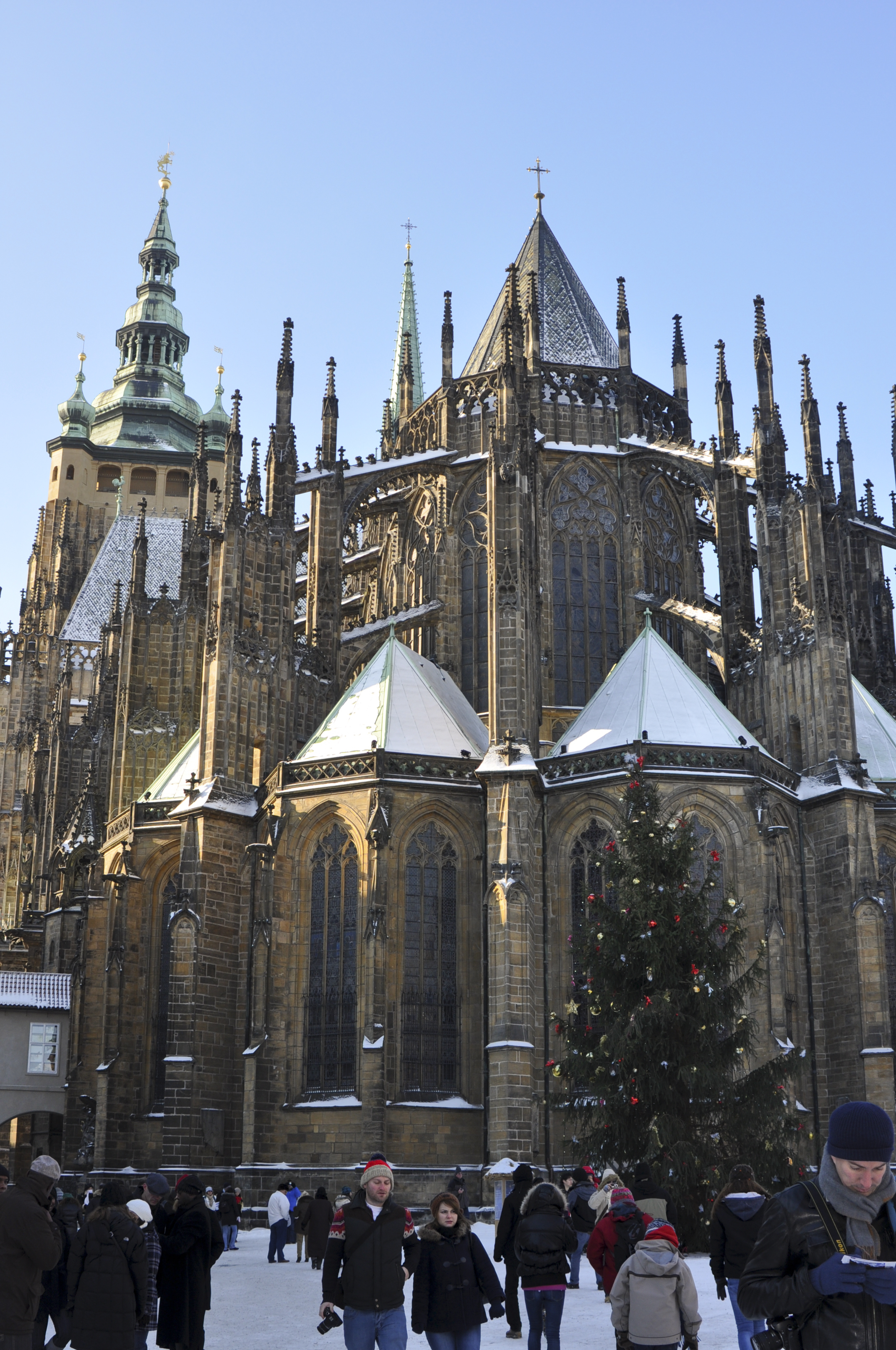 Since we only had 1.5 days in Prague, we had to plan our time wisely.  Our first stop was The New Town to experience the more modern, urban side of Prague.  We started at the top of the Wenceslas Square (more like a boulevard) by the National Museum and the statue St. Wenceslas and walked past the many retail stores, cafes and restaurants until we found ourselves at yet another Christmas Market (despite being two days after Christmas).   There we tried trdlo (a warm, lightly sweetened cinnamon bread wrapped around a cylinder-type thing) just because it looked interesting.  Quite tasty.