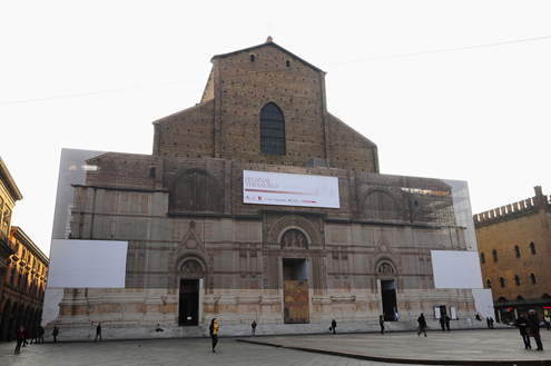 Dedicated to the city’s patron saint, the Basilica of Saint Petronio is the fifth largest in the world. Construction began around 1390 and continued for several centuries, but the façade remains unfinished (hence, the scaffolding).