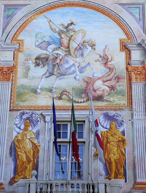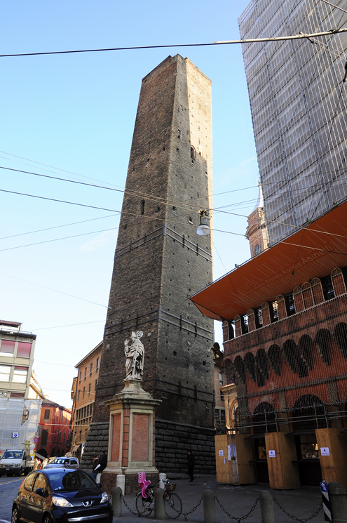 Built in the 12th century, the Two Towers of Bologna (Le Due Torri) stand as symbols of the city. The Asinelli Tower (Torre degli Asinelli), about 318 feet high, and the Garisenda Tower, about 157 feet high, are named after the families who built them. Climb the 500 steps of the Asinelli Tower for (what I’m told) superb views of the city. It was closed for restoration when we were there, but sometimes medieval structures need a bit of work. : )