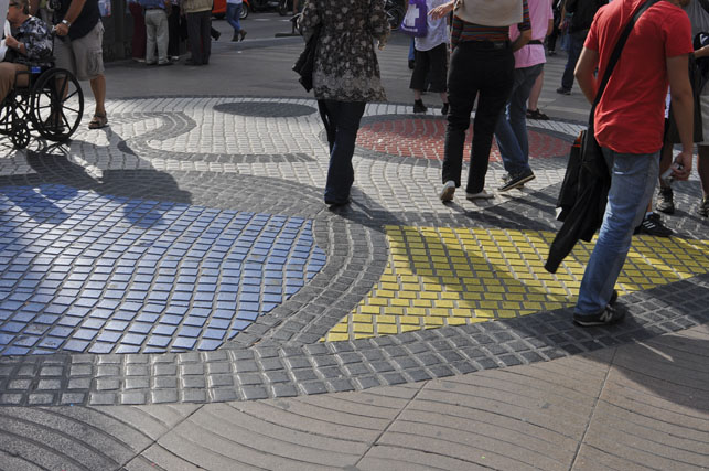 Close by the Boquería Market, is a very special piece of pavement. If you are not paying attention or if too many people are walking about, you can miss the Miró Mosaïc (Mosaïc de Miró). Joan Miró, one of the greatest Catalan artists, made the city of Barcelona this colorful, bold mural. Very cool.