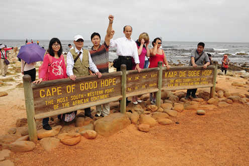 It is a common misconception that the Cape of Good Hope is Africa’s southernmost point, when in fact this distinction goes to Cape Agulhas, about 90 miles east. The Cape of Good Hope is however “the most south-western point of the African Continent” exactly what the sign says (and what these people in the photo seem to be cheering about).